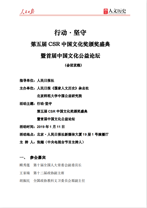 行動(dòng).堅(jiān)守 第五屆CSR中國(guó)文化獎(jiǎng)?lì)C獎(jiǎng)盛典暨首屆中國(guó)文化公益論壇 會(huì)議議程