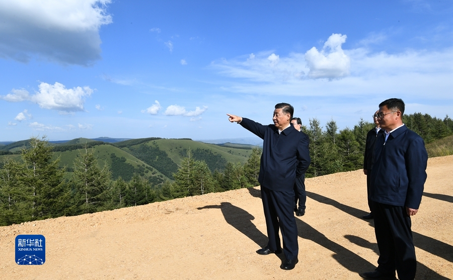 8月23日至24日,中共中央總書記、國家主席、中央軍委主席習近平在河北省承德市考察。這是23日下午,習近平在塞罕壩機械林場月亮山考察。新華社記者 謝環馳 攝