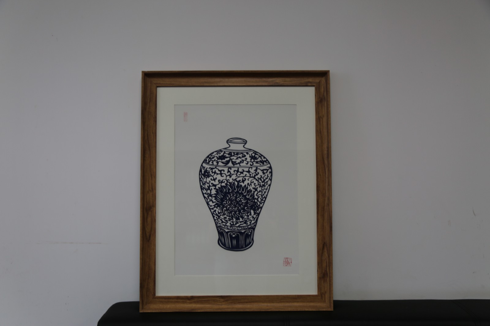這幅青花瓷花瓶刻紙的作者是12歲的鄧玉友,家在山東省德州市臨邑縣,患有先天性聽力殘疾,但是他在學習的道路上從未止步,在校取得了斐然成績,尤其是工藝課-刻紙方面表現突出,刀工熟練細膩,比較擅長刻青花瓷。他的刻紙作品在袁敬華校長開全國人大會期間作為禮物送給了李克強總理。