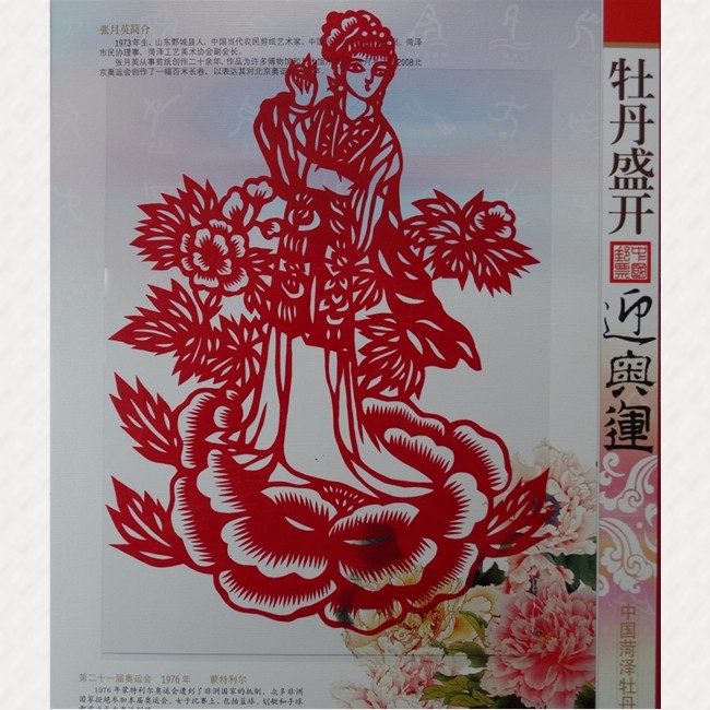 內含九套精品郵票、兩幅牡丹剪紙、一個首日封和一本牡丹譜。