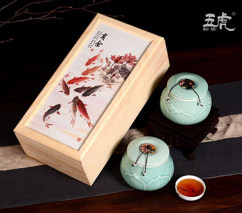 線上支付特級金駿眉紅茶茶葉禮盒裝 武夷山桐木關紅茶實木陶瓷罐五虎有余