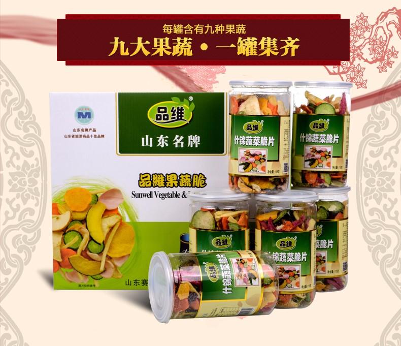 1、本次拍賣的拍品是品維 果蔬脆禮盒 山東特產綜合蔬果干零食115gx6罐送禮禮盒。