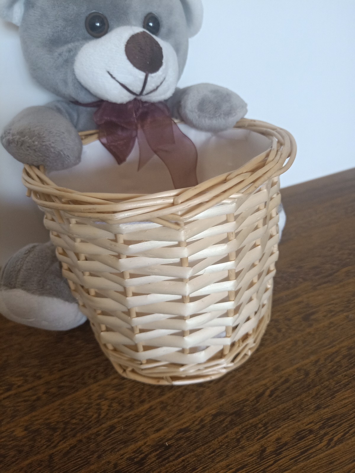 線上支付公益拍品手工制作可愛小熊收納盒柳編筆筒桌面整理盒