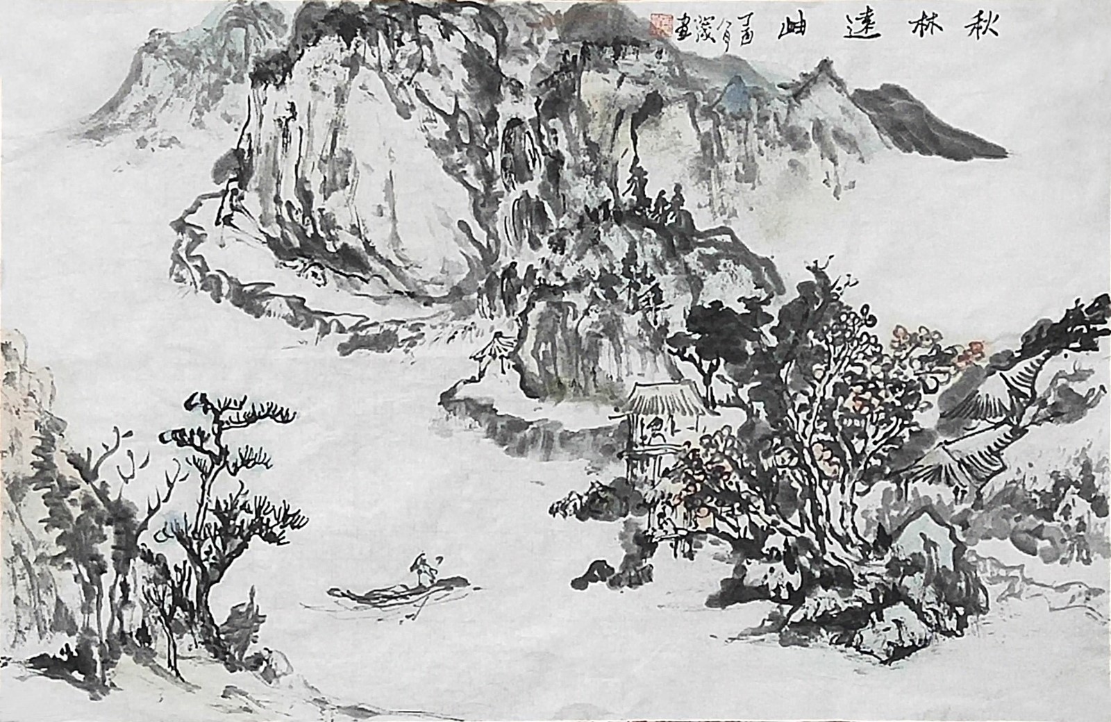 俞沁成《秋林遠岫》