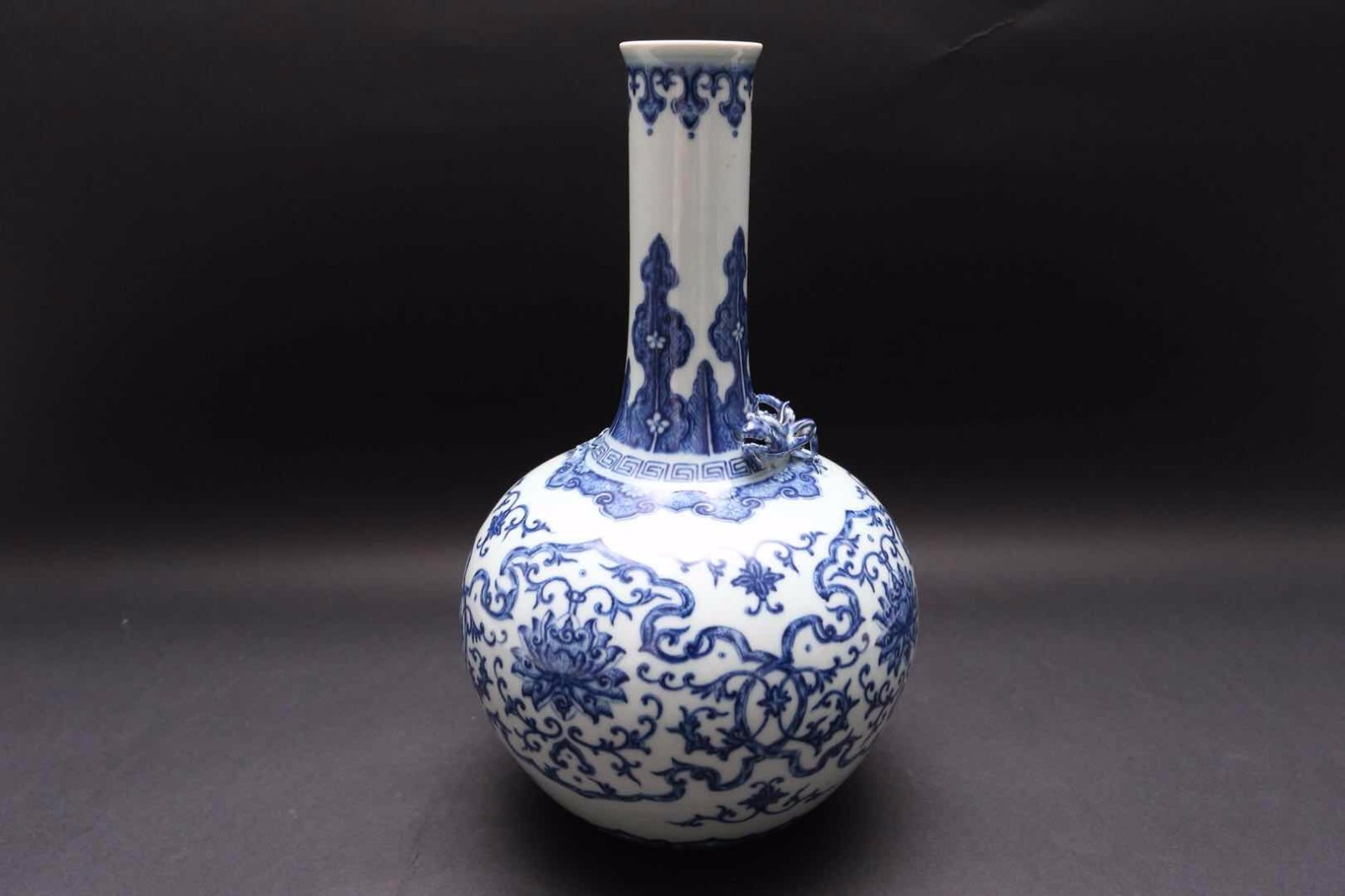 青花龍紋纏枝花卉直頸瓶,16*26公分.2018第十三屆全球城市小姐暨全球城市形象大使選拔大賽世界杯總決賽將于2018年10月26日在南郊賓館舉行,本件拍品為總決賽慈善拍賣作品,成交價款將部分用于慈善公益事業。