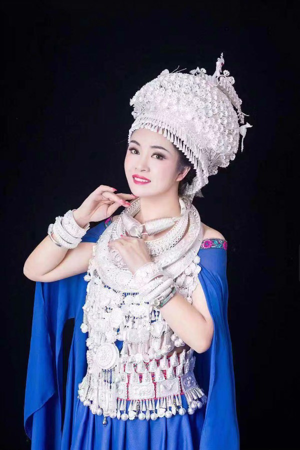 作品簡介:苗族銀飾作為一種文化現象在歷史上曾被許多民族青睞,成為多元文化交流的載體之一。堆大為山,呈現出巍峨之美;水大為海,呈現出浩渺之美。苗族銀飾以大為美的獨特見識,用美學的觀點來看是很有道理的。同時也體現了你的家庭富裕程度是不錯的,并顯示著家里姑娘的大氣。