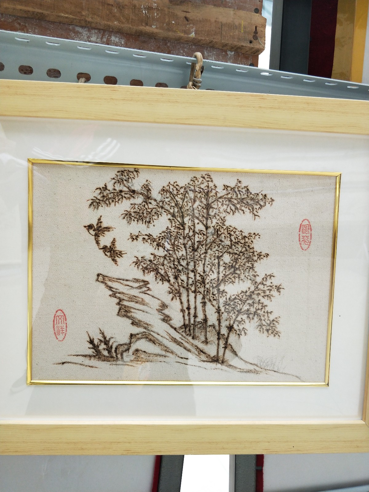 慈善布烙燙畫作品《梅蘭竹菊》  規格:0.32m*0.4m (共4幅)