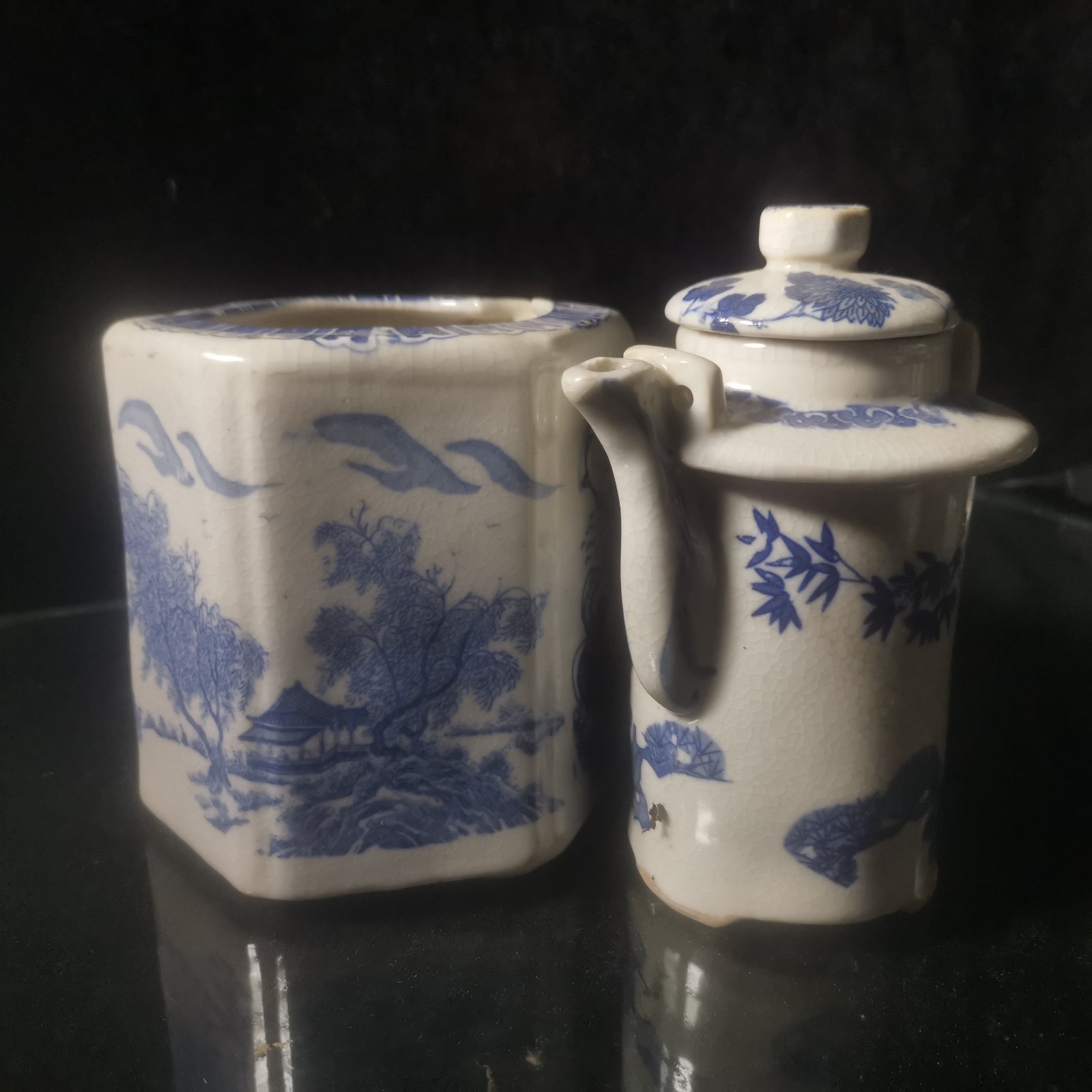 大清康熙年制,八仙過海各顯神通青花溫酒壺,畫工精美,神態自若,外六六方畫面感很強,有虛有實,內膽梅蘭竹菊四君子,包漿老,自然開片,使用痕跡明顯,酒友的好伴侶,規格外六方11×12.5×12cm,內膽7×14.5cm總高18cm。重1856g