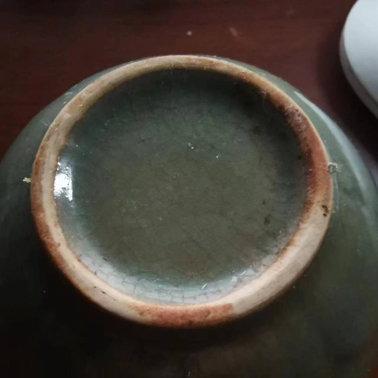 汝窯茶盞,外壁有蓮花花瓣,小開片,放大鏡下有柴燒的汽泡,底足有火石紅,上口10.5cm,底足4cm,高7.5cm,重185g