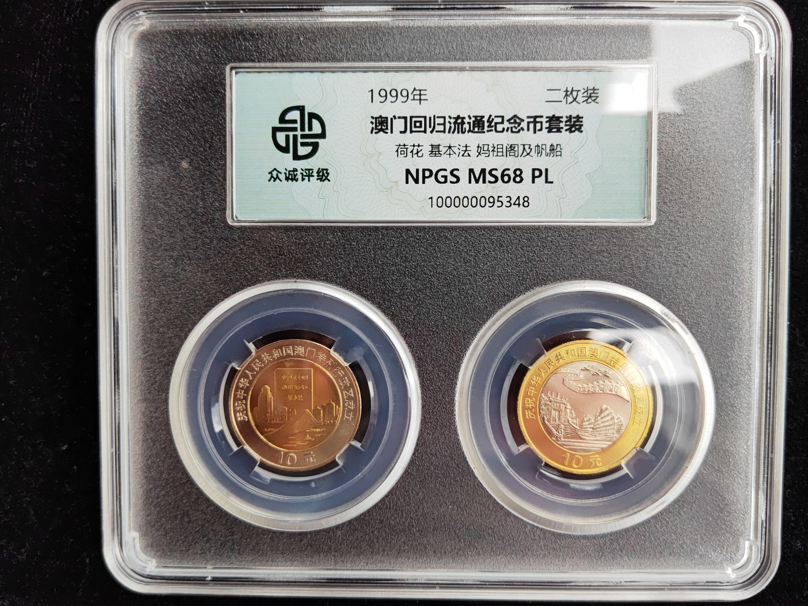 眾誠評級MS68分—澳門回歸紀念幣二枚