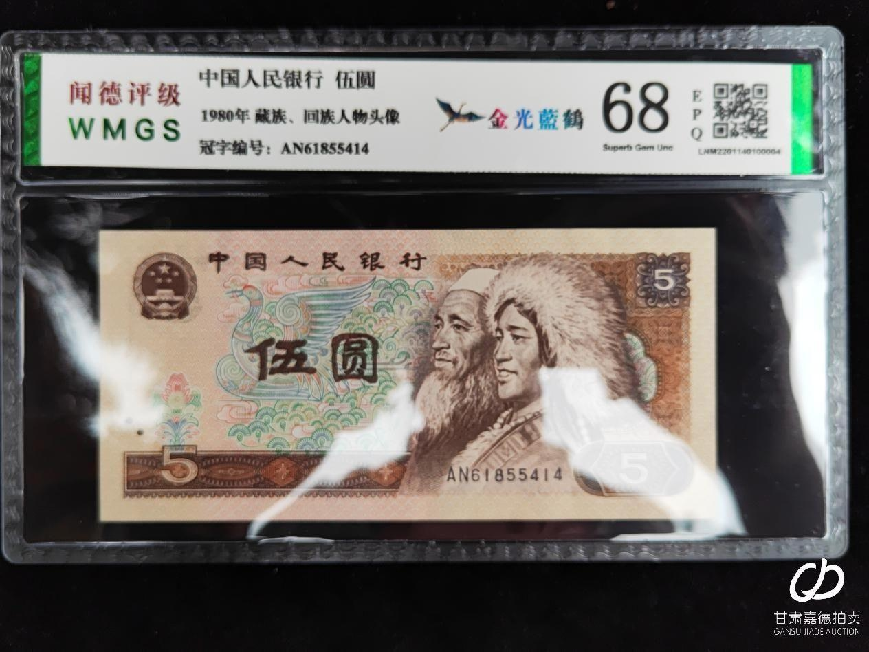 線上支付聞德評級68分—白鉆拾元一張、 聞德評級68分—金光藍鶴伍元一張