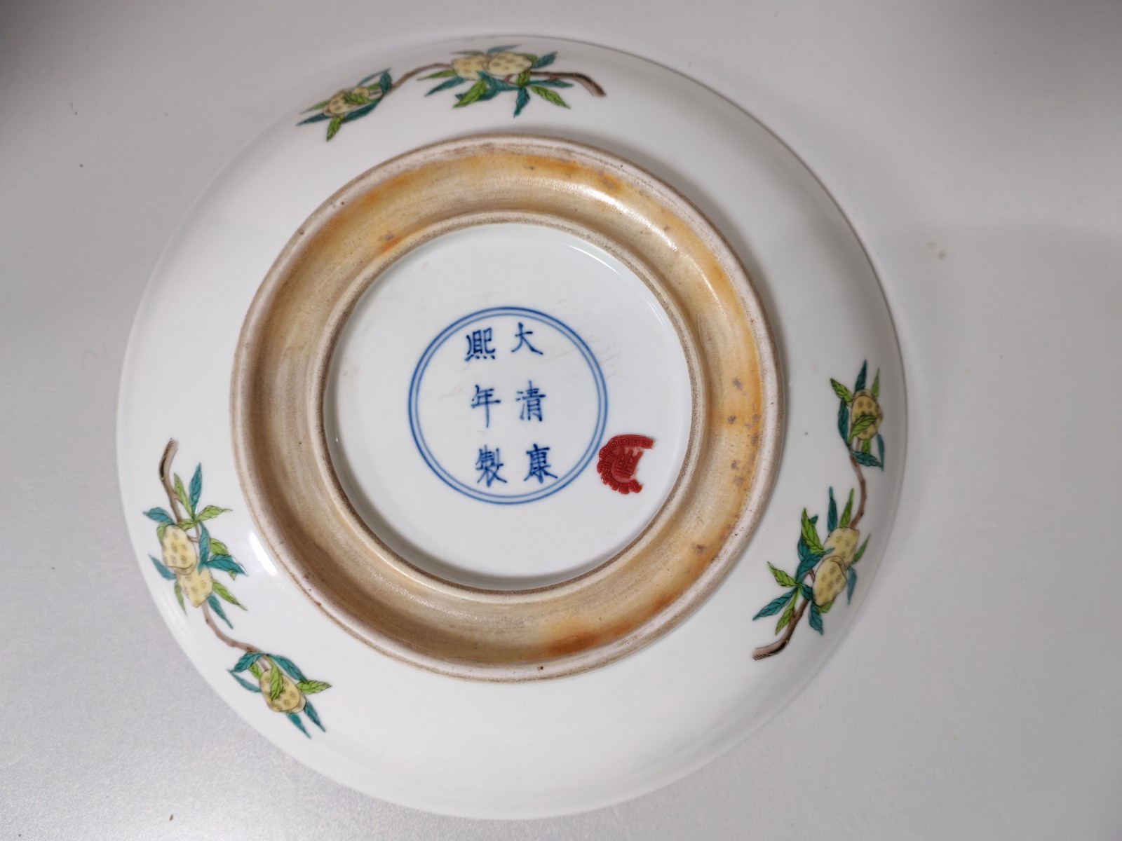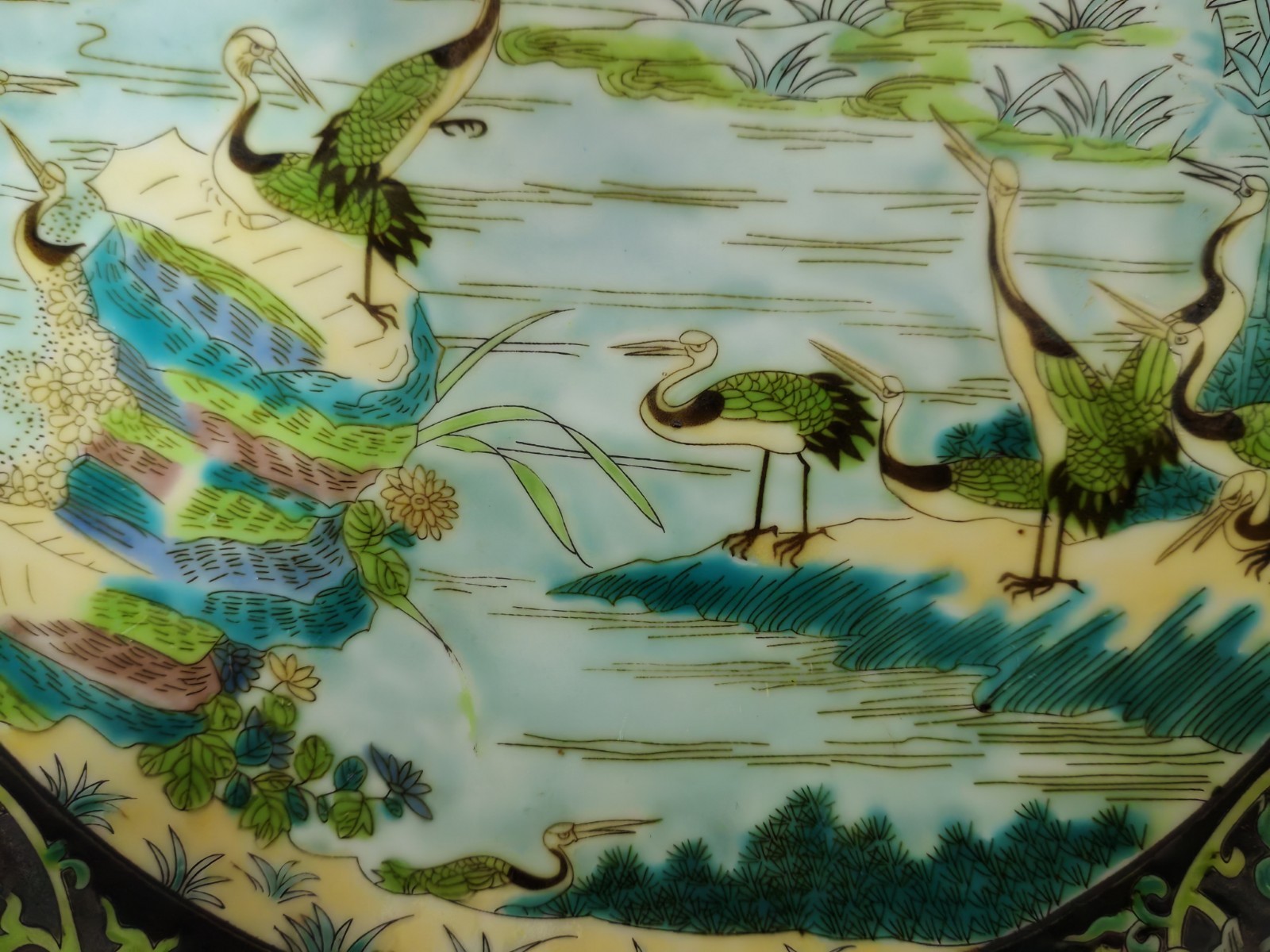 【名稱】清康煕墨地三彩松鶴長春盤