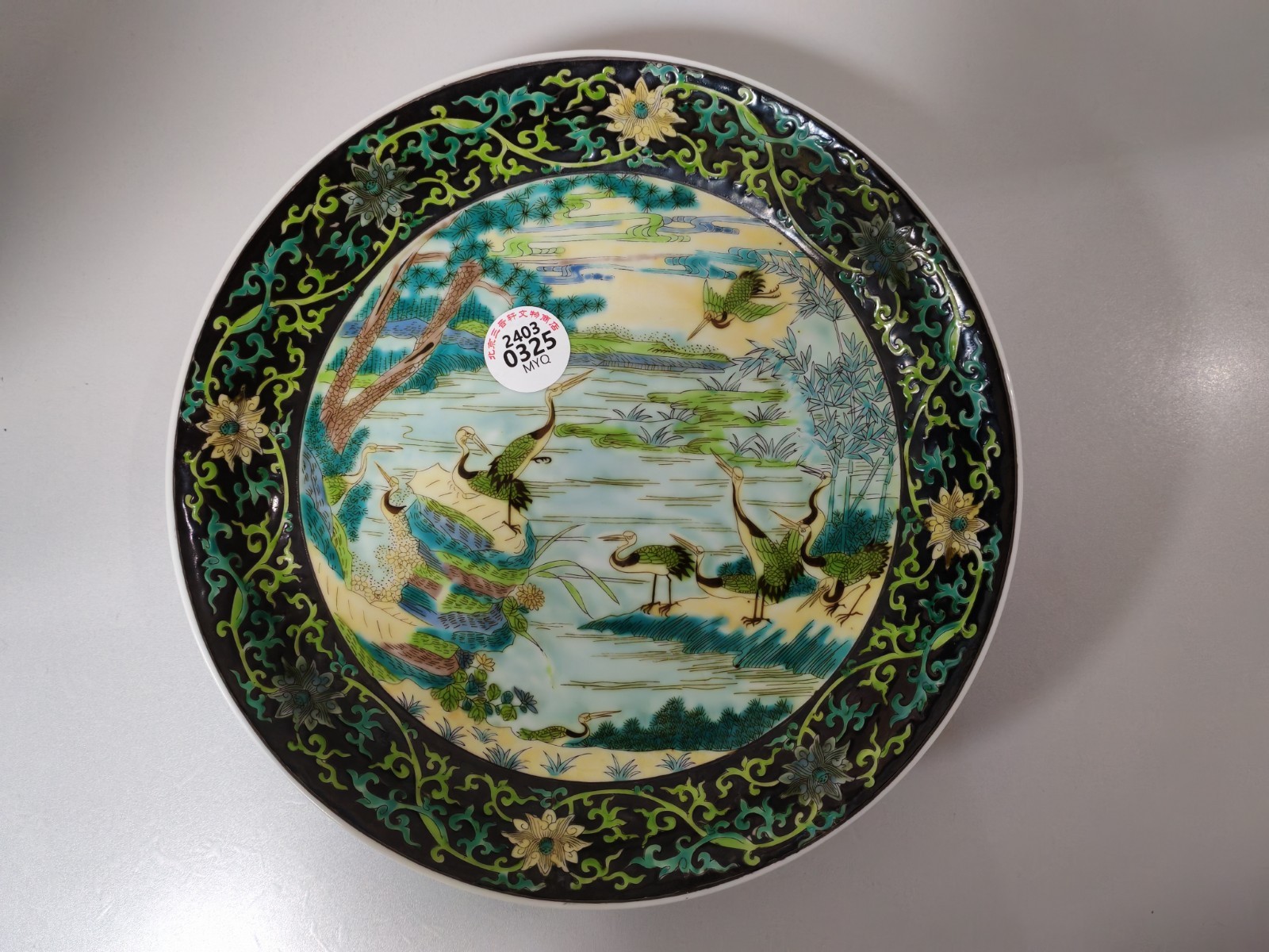 線上支付清康煕墨地三彩松鶴長春盤