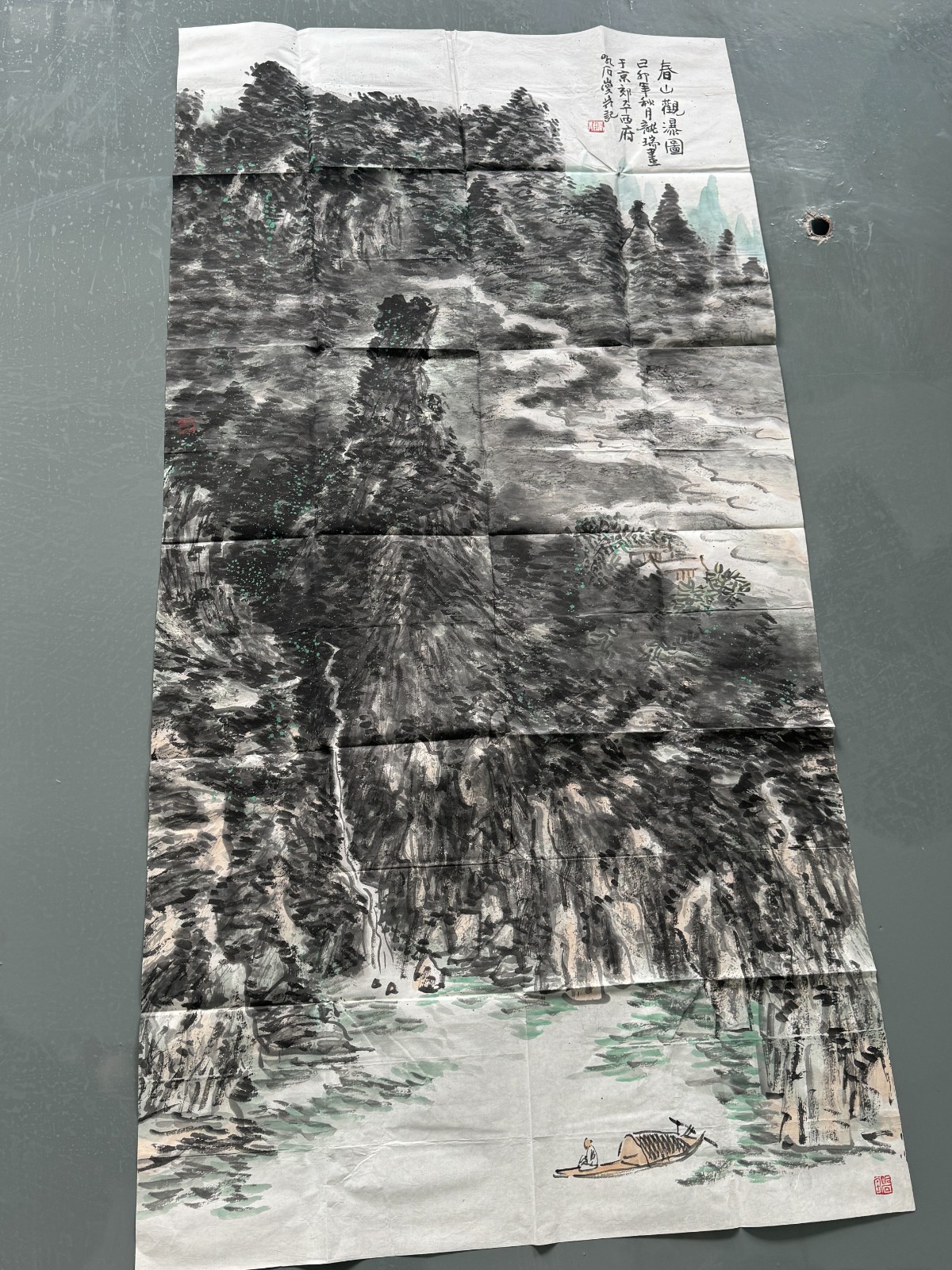 《春山觀瀑圖》龍瑞山水畫作品136cm*68.5cm,3印,